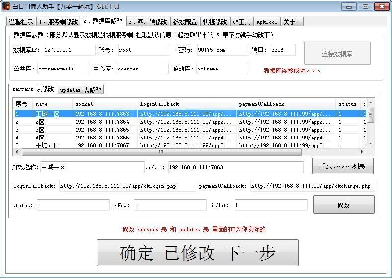 我自己测试的时候,把服务器从 127.0.0.1 换成局域网地址,只用了五秒钟。它会提示“IP修改结束 下一步”,整个流程比较干净利落。
