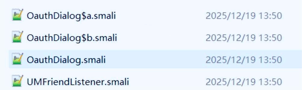 OauthDialog 相关 smali 文件是报毒命中率最高的一类,尤其是在未实际使用第三方登录的情况下,保留它们几乎没有意义。