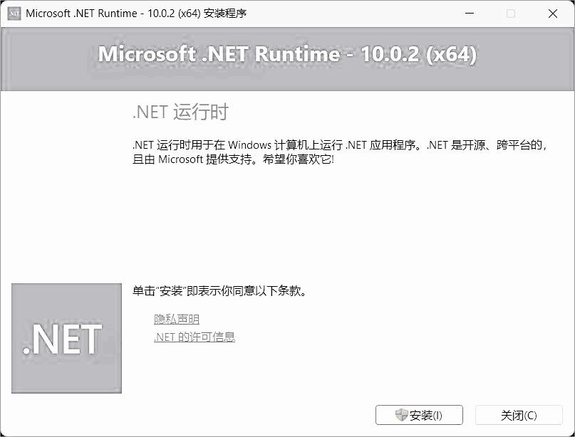 - 工具名称:微软 .NET运行库 Microsoft .NET Runtime v10.0.2(.NET10.0)正式版